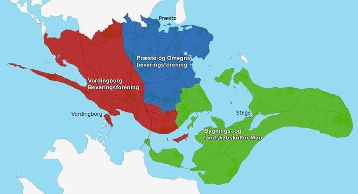 Større sager, der angår ændringer af bevaringsværdige bygningers ydre fremtræden, og som ligger uden for facaderådenes kompetenceområde, sendes i høring hos museerne.dk og den bevaringsforening, der dækker det pågældende område se kort 42.1 ”Bevaringsforeningen i Vordingborg” dækker den vestlige del af kommunen og Stensved. ”Bygnings- og landskabskultur Møn” dækker den sydøstlige del af kommune, Møn, Kalvehave og Viemose. ”Bevaringsforeningen for Præstø og Omegn” dækker den nordøstlige del af kommunen til og med Mern og Sandvig. Sognegrænserne afgør i landzone hvilken forening der høres.”