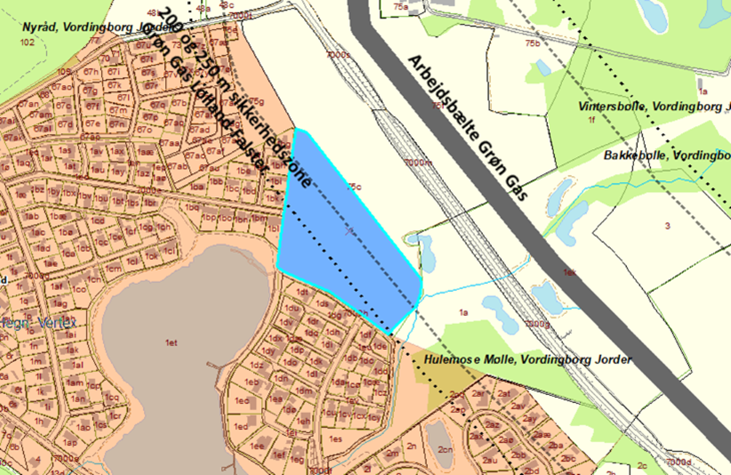 En del af området ligger inden for den udpegede sikkerhedszone i landsplandirektivet for Grøn-Gas Lolland-Falster. Områdets afgrænsning svarer til afstanden for øvrig boligområders afstand til gasledningen (nordvest og sydøst for udlægget), hvorfor risikobilledet ikke vurderes at blive ændret som følge af fremtidig boligbebyggelse på stedet.
