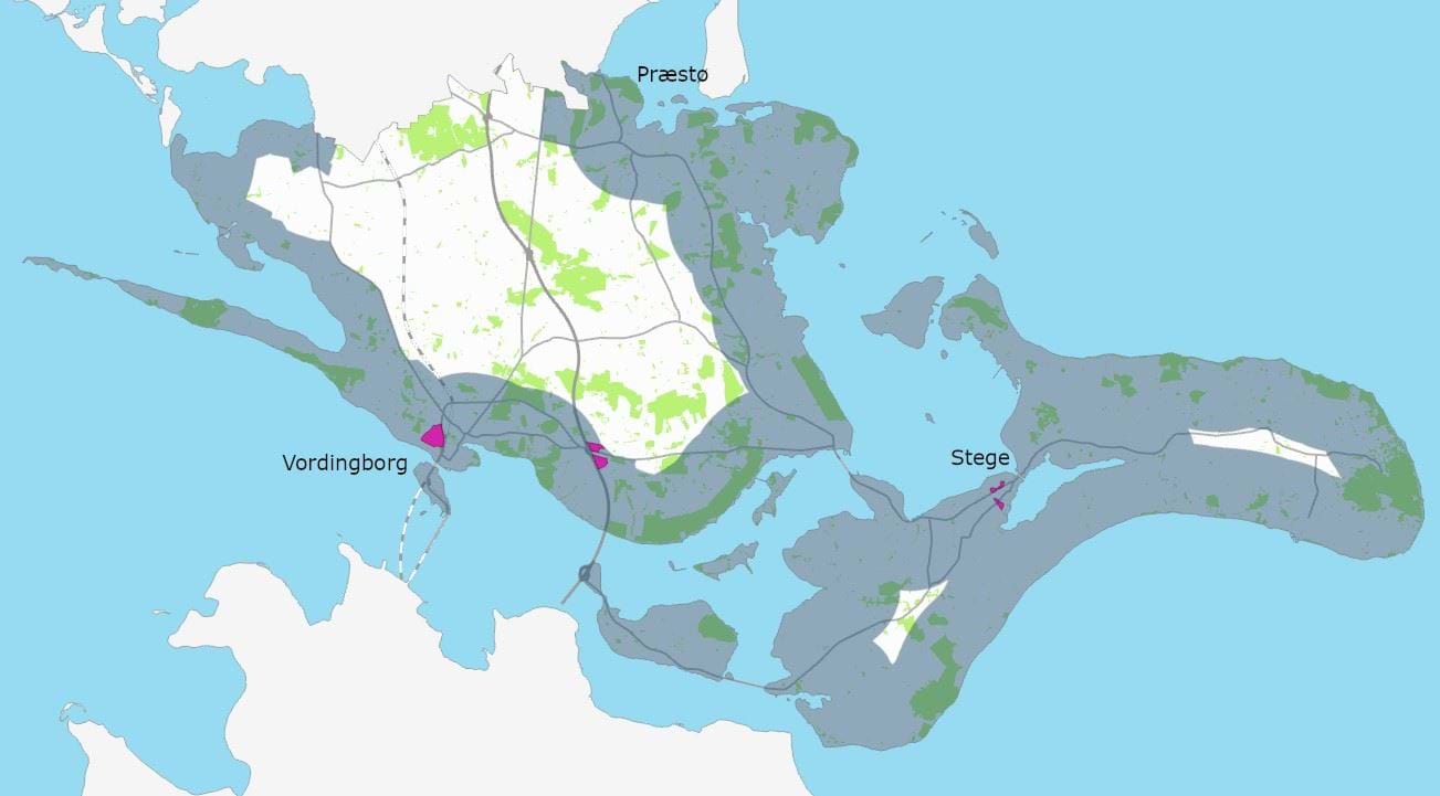 Med Vordingborg Kommunes lange kyststrækning er en væsentlig del af kommunens areal omfattet af kystnærhedszonen - eksempelvis næsten hele Møn.