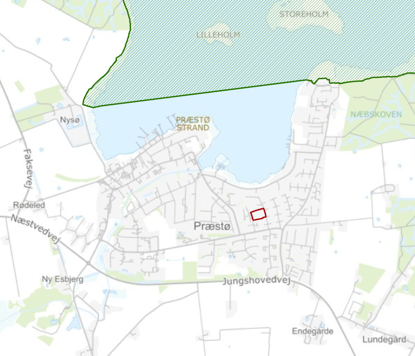 Nærmeste Natura 2000-område er nr. 147 Havet og kysten mellem Præstø Fjord og Grønsund, beliggende 1,1 km nord for lokalplanområdet.