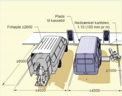 Parkerings- og manøvrearealer skal anlægges efter vejlovgivningens regler og skal ligeledes etableres i overensstemmelse med Vejdirektoratets håndbog “Færdselsarealer for alle – Universelt design og tilgængelighed. Anlæg og planlægning”.