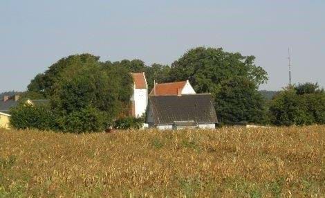 Kirken virker en smule indeklemt og godt skjult i landsbyen. I landsbyen er der generelt få indbliksmuligheder til kirken pga. at skolen og præstegårdshaven hindrer indsynet. Kirken opleves derfor først, når den besøgende kommer helt tæt på.