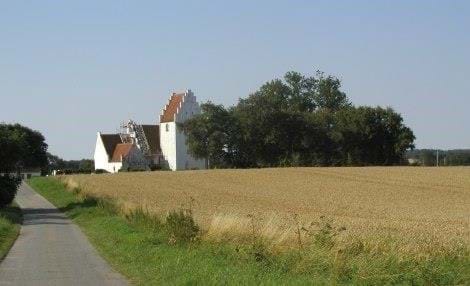 Til den markante, middelalderlige bygning er tilføjet et sengotisk nordvendt tårn. Dets usædvanlige placering skyldes kirkens beliggenhed ved norets vandkant.