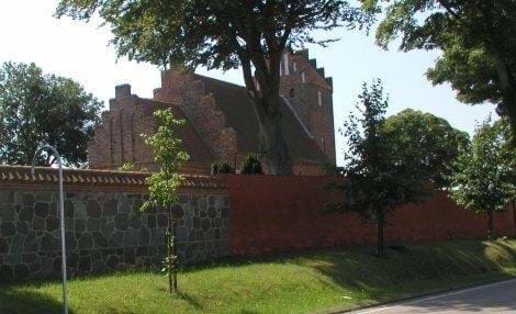 Nord for kirken er store træer placeret mellem vej og kirkegårdmur. Denne beplantning på ydersiden af muren er med til at formidle skalaen mellem den høje, og meget markante, kirkegårdsmur og vejen.
