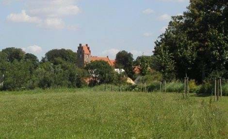 Der er et fint samspil med landskabet mod syd, hvorfra kirken kan ses langt fra. Helt fra Klarskov og Kastelev kan kirken skimtes. Kirken og den omgivende beplantning kan ses mange steder fra og fortæller på fin vis den besøgende hvor landsbyen er placeret i landskabet.