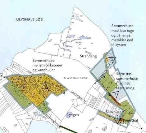 En stribe sommerhuse ved Sandvejen, bygget mellem 1918 og 1921, ligger på række i skovbrynet. Alle husene har høj tagrejsning og altan i gavlen. De sorte facader smykkes af hvidmalede vinduer og døre og med fine snedkerdetaljer.