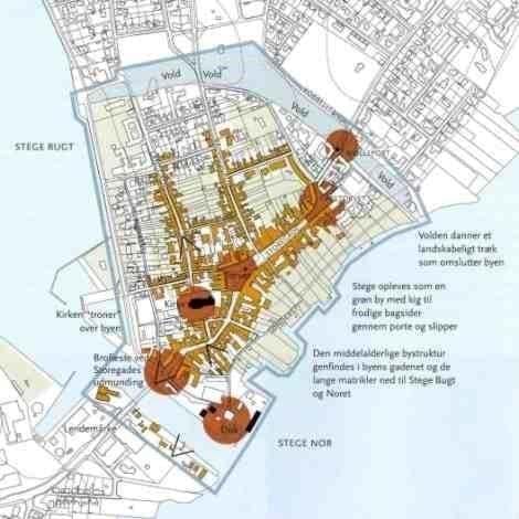 Stege er en gammel købstad, og byen rummer mange spor fra middelalderen. Byen ligger på et næs i det smalle farvand, som forbinder Stege Bugt med Stege Nor danner tilsammen en næsten timeglasformet figur, hvor Stege ligger i indsnævringen, midt på Møn.