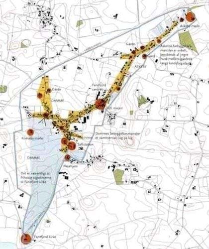 Damme og Askeby er to næsten sammenhængende bebyggelser, men hver med sin landbykerne. De er forbundet af et tredje led, nemlig oplandsbyens nyere huse.