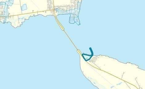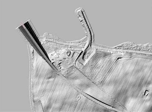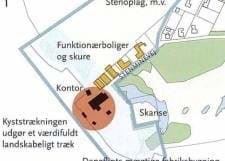 Skyggekort, der viser jordskansen mellem brofæste og anløbsmole
