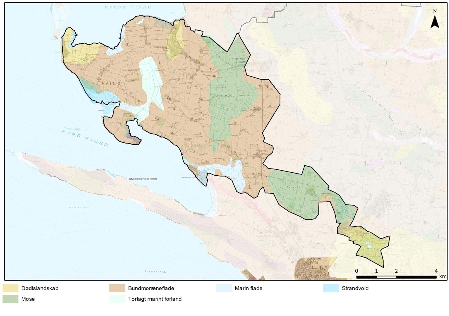 Hovedparten af området er lavtliggende bundmoræneflade, beliggende vest for de sydsjællandske israndslinjer. Det flade landskab udgøres desuden af vidtstrakte mosearealer, herunder Svinø Nor og Skaverup Nor/Purremosen, der tidligere har været hav. Yderst på halvøen og ved Kostræde Banker er der dødislandskab, som er markant mere kuperet. Ved Kostræde Banker når højderne op i kote cirka 20, hvilket er omkring 15 meter over det omgivende terræn, og i vest ved Svinø når højderne op til kote 17. Skovområdet i syd er også dødislandskab. Jordarterne i området væver sig ind mellem hinanden, og består af såvel ler som mere sandede flader og tørvearealer.