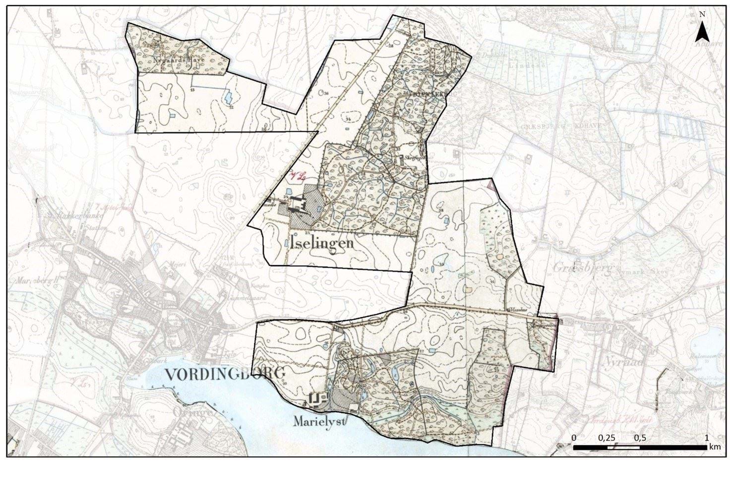 Landskabets bærende karaktertræk bygger på den store strukturreform efter salg af krongodset Vordingborg Ryttergods i 1774 og oprettelsen af 12 nye godser, heraf det tidligere centrum Vordingborg Slot, som blev købt af Reinhard Iselin. Marienlyst er udstykket som en parcel fra Iselingen i 1787 og hovedbygningen opført i år 1800. Den ny hovedbygning på Iselingen blev opført i 1802 og med fredskovsforordningen i 1805 har vi her overklassens ideallandskab omkring år 1800, bogstaveligt talt selve grundlaget for og billedet på Guldalderlandskabet.
