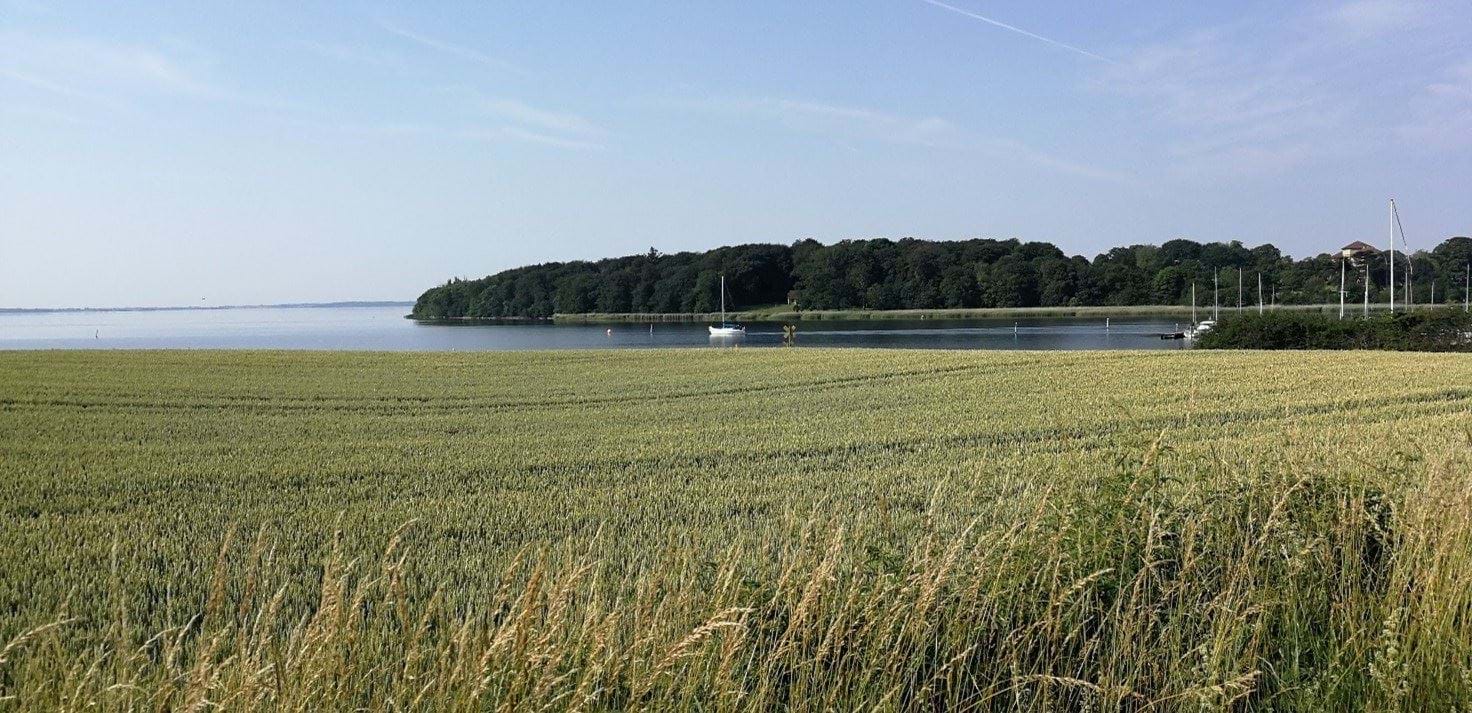 Mod øst kig helt til Farøbroerne, hvor lastbiltrafik visuelt forstyrrer det ellers rolige og idylliske kystlandskabsbillede.