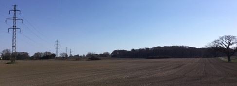 Højspændingsledninger præger området.