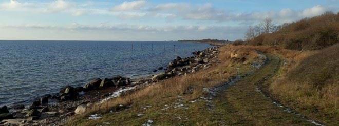 Den sydlige kyst veksler mellem sandstrand, stenstrand og erosionskyst.