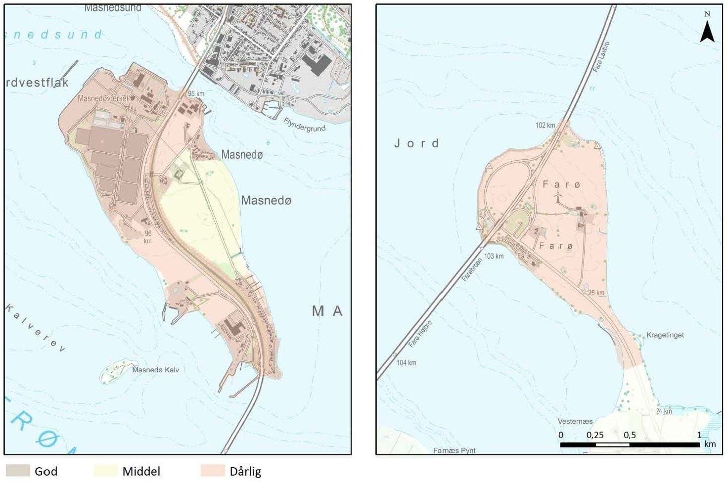 På både Farø og Masnedø er livet væsentligt forandret efter øerne er blevet brofaste med Sjælland og ikke længere er små isolerede øsamfund med enkelte gårde. Ved landskabsanalysen defineres de derfor med dårlig tilstand, Masnedø primært pga. byudvikling og den stadige udbygning af havne og infrastruktur, Farø primært pga. motorvejsanlæggets visuelle dominans og støj, fraflytning og affolkning samt rydning af diger, læhegn og bebyggelse.