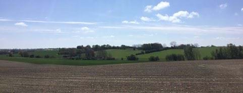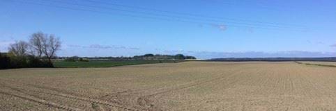 Udsigt over blokudstykningen fra Kong Asgers Høj. Velbevarede diger og spredte gårde på markfladerne.