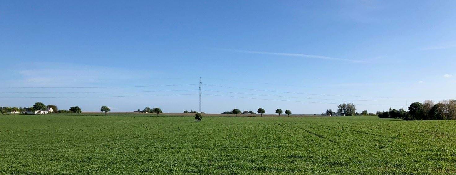 Bakket landskab syd for Hårbølle. Den flade hatformede bakke Møllebjerg ses på billedet.