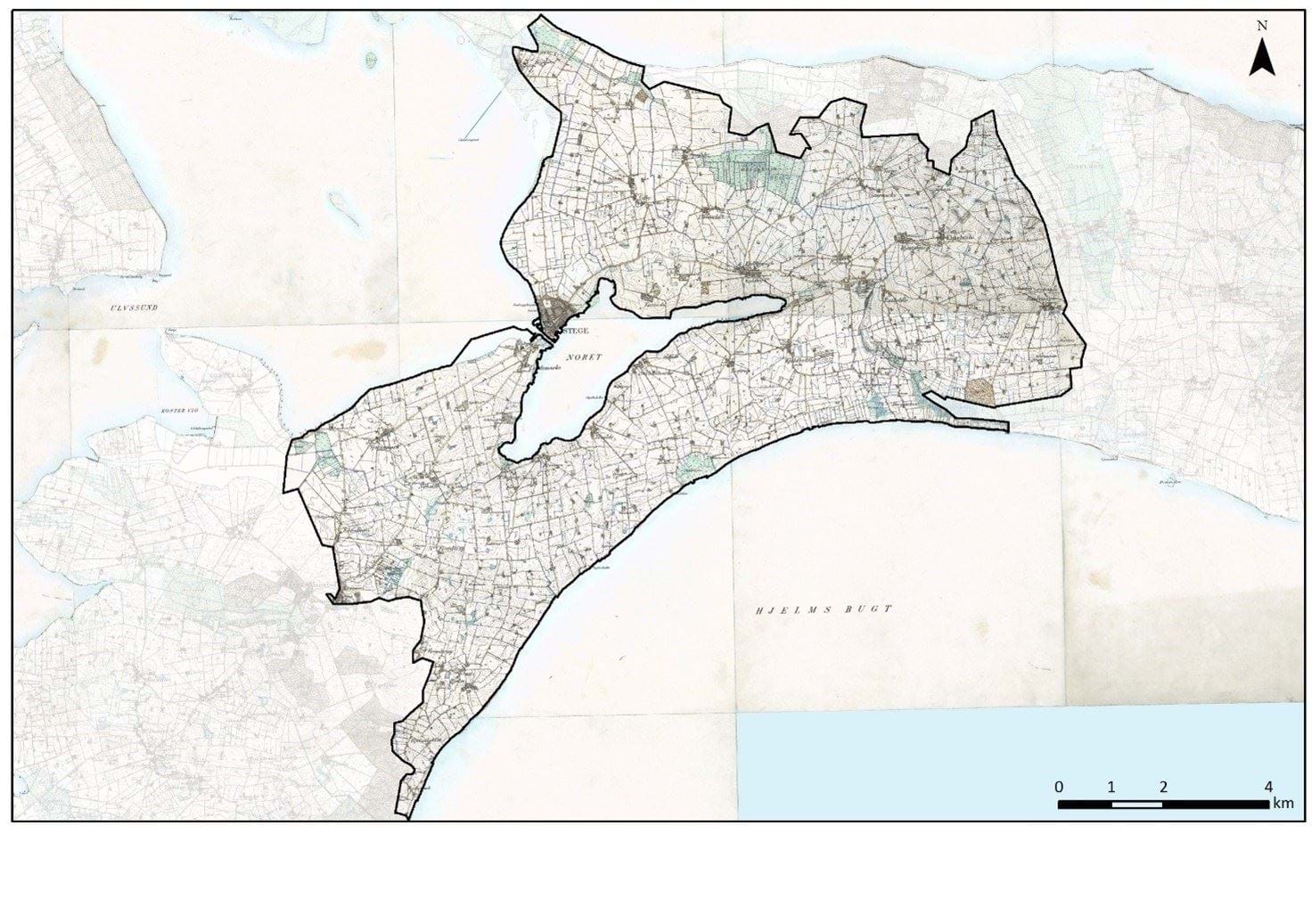 Udskiftningslandskab omkring år 1800. Landsbyer præget af både stjerne- og blokudskiftninger. Ved blokudskiftede landsbyer er gårdene primært udflyttet. Enkelte steder ses en struktur fra før udskiftningen, da området indeholder flere gårde, som var kongsgårde. Desuden er områdets (grænser) flere steder præget af nyere bebyggelse, herunder sommerhusområder ved Råbylille Strand og Ulvshale Strand og byudvikling både med boligområder og erhvervsområder omkring Stege.