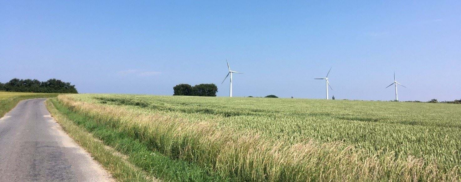 Vindmøllerne nord for Udby. Én af de mange vindmøllegrupperne i området.