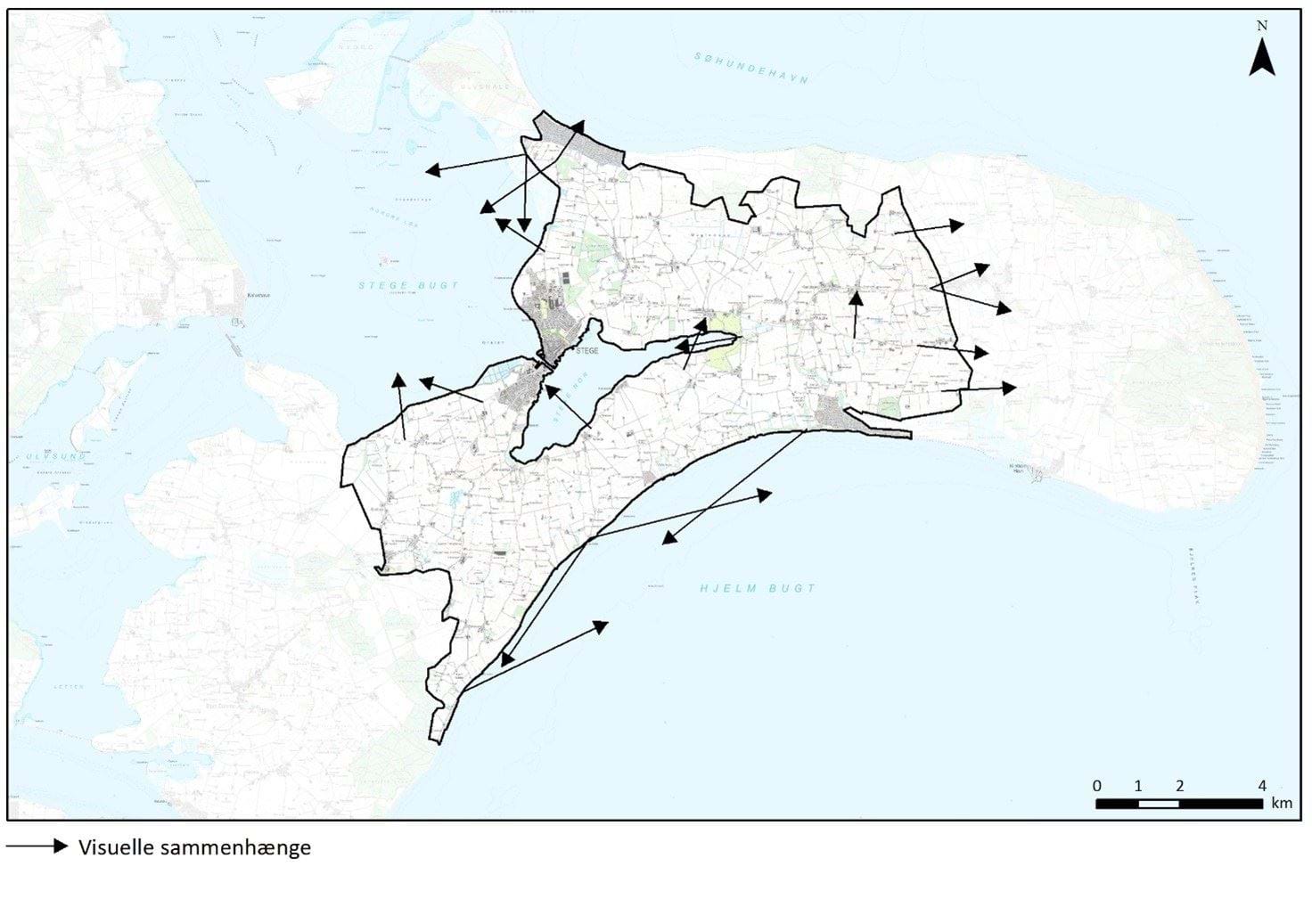 Udsigt fra Søndersognsvej nord for Tøvelde over Stege Nor til Stege. Visuel sammenhæng på tværs af Noret.