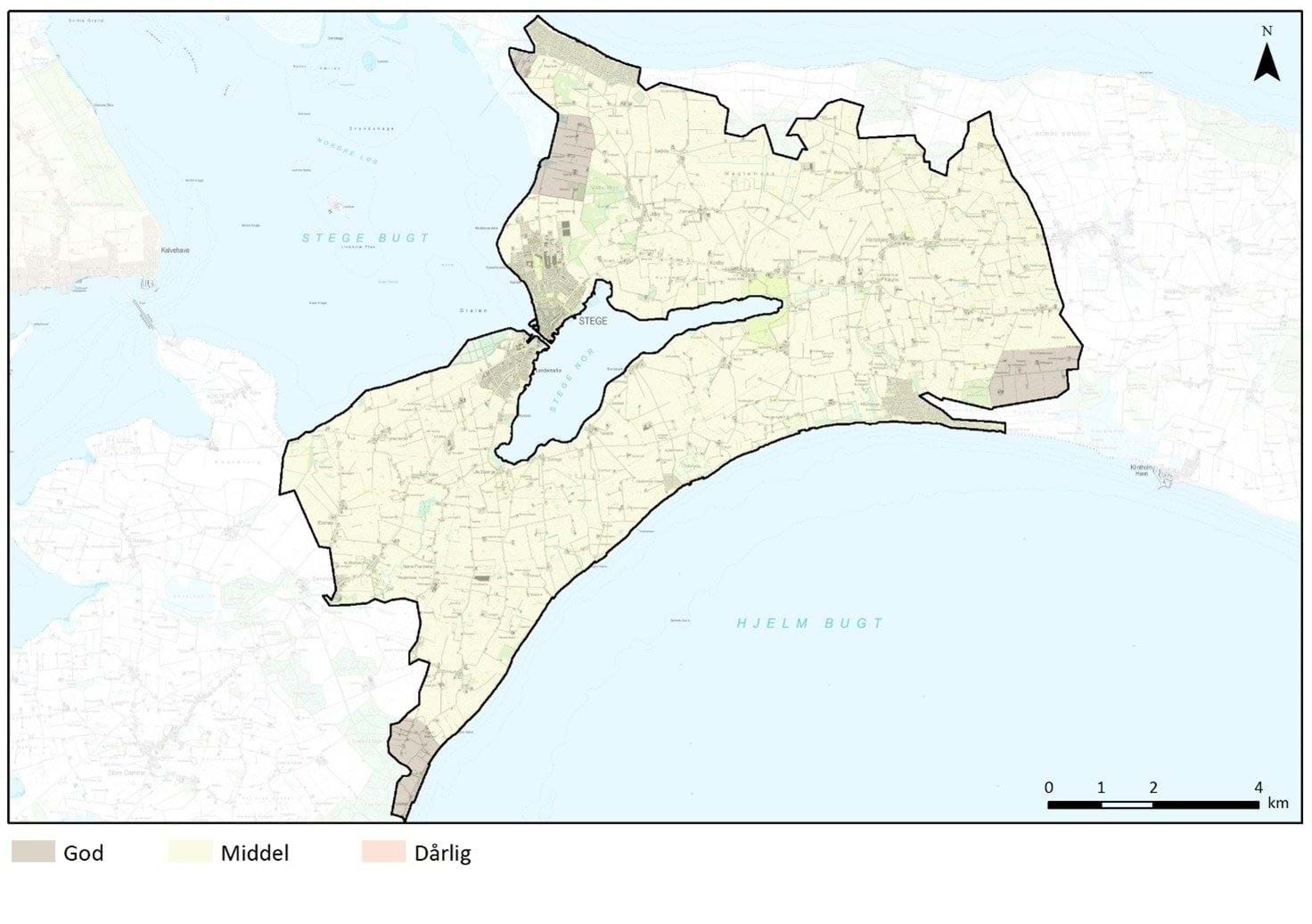 Størstedelen af området opleves som karakteristisk, hvor nøglekarakteren opleves stærkt, dog er der sket en lille udvikling i området, f.eks. sløjfede hegn, fortætning af bebyggelse og etablering af tekniske anlæg.