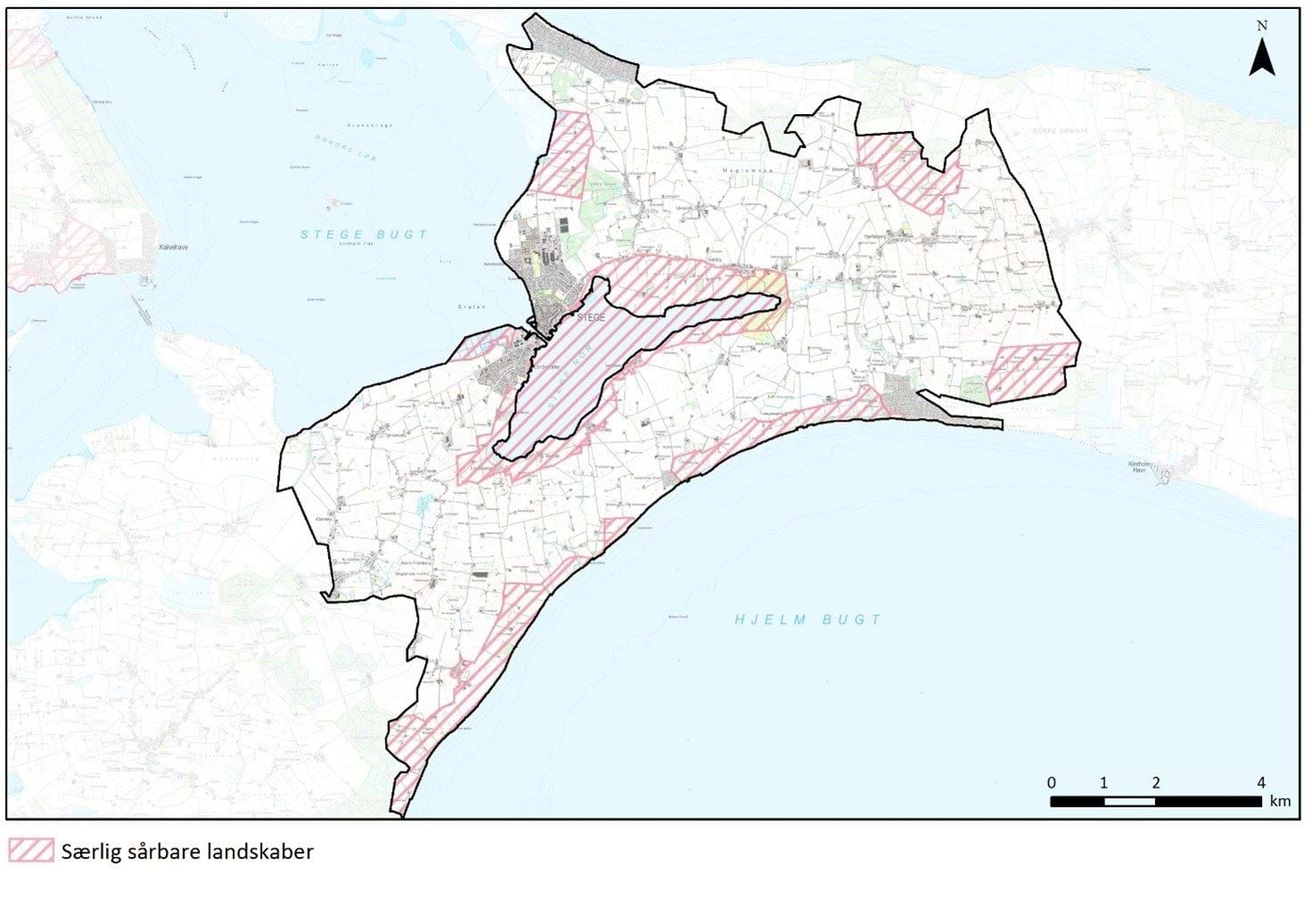 Stege- og Udby skov og blokudskiftningslandskab: Området vest for landsbyen Udby opleves som et kontrasterende landskab med et større skovområde, som ellers er stort set fraværende i resten af området. Yderligere opleves en tydelig struktur med udflyttede gårde, placeret på store marker i et landskab, som opleves meget åbent, da der er udsigt over kystlandskabet og til modstående kyster. Yderligere forstærkes områdets kontrast fra resten af området af fraværet af husmandssteder langs vejene. Landskabet har en meget dominerende struktur med øst-vestgående levende hegn. Hegnene understreger den visuelle kontakt til kysten.