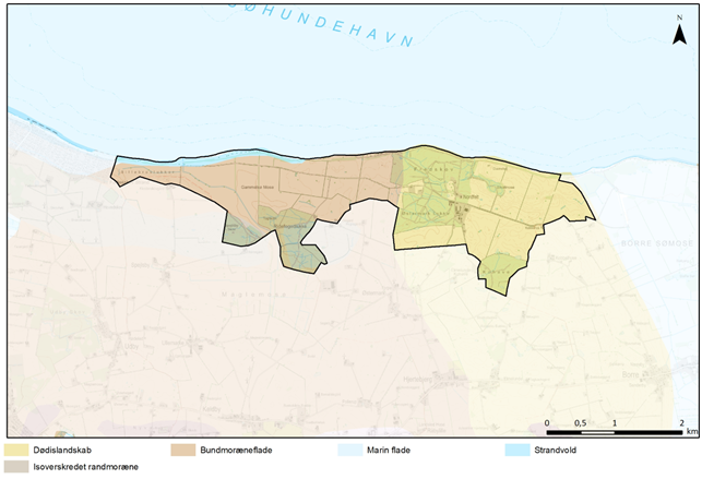 Det storbakkede landskab mod øst og den let kuperede centrale og sydøstlige del af landskabet stammer fra sidste istid, mens det inddæmmede og tørlagte landskab i den gamle tunnel- og smeltevandsdal omkring Gammelsø Mose og Sillebroslukker formodentligt er skabt af mennesker. Men allerede af Videnskabernes kort fra 1776 fremgår det at kystlinjen ligger fast og Gammelsø Mose og Sillebroslukker er en landfast del af Møn.