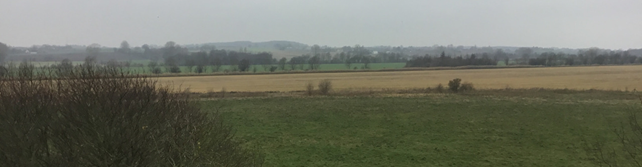 Det nordlige åbne landskab set mod syd – Betonsiloen i Ny Borre står midt i billedet