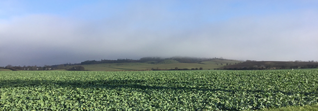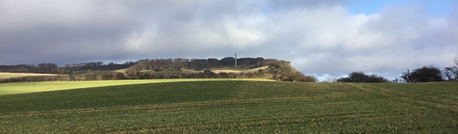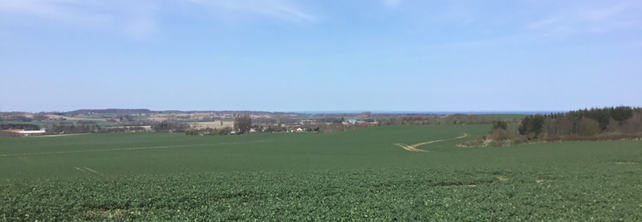 Udsigt til 18 Borrelavningen, 17 Nordfeld Godslandskab og 16 Det Midtmønske landbrugslandskab