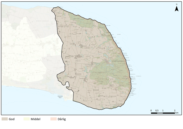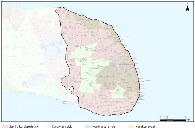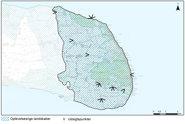 Skovlandskabet: Er præget af store sammenhængende skove, der ligger ud til klintekysten. Skovene rummer lysninger og deles op af åbne overdrevsprægede arealer. Skovene er præget af mange publikumsfaciliteter og stier.