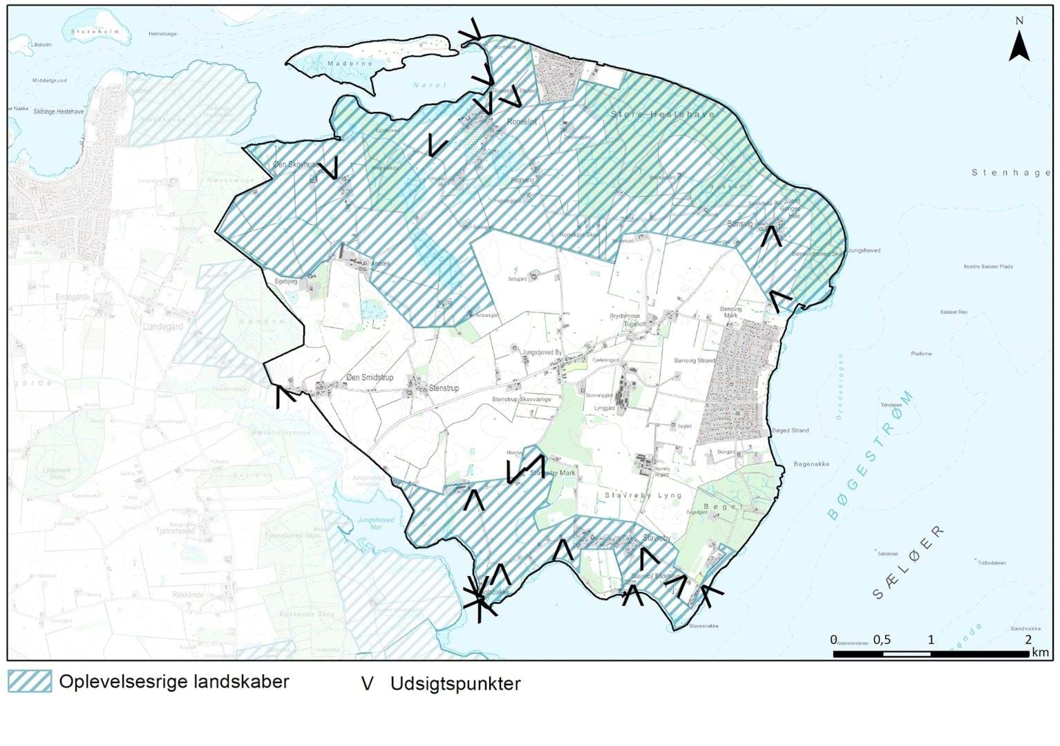 Størstedelen af området opleves som karakteristisk, hvor nøglekarakteren fremstår tydeligt som et sammensat småskalalandskab med småbakket til bølgende terræn og landbrugsudnyttelse. Ved kysten et bånd af enge, skove og sommerhusområder.