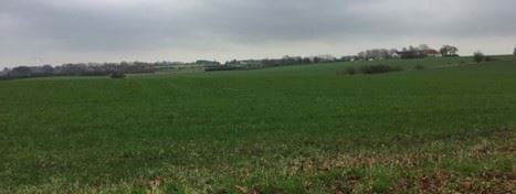 Landskab nord for Tolstrup – vindmølle ved Lilliendal anes i baggrunden