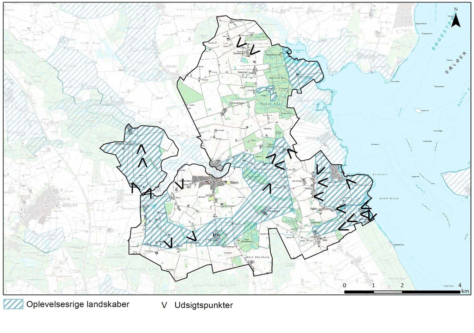 Hele den østlige del af området fremstår kuperet og med gode udsigter og bevarede landskabselementer, velbevarede landsbyer og god forbindelse til kysten. Ved kyst og ådal ses stadig engarealer, der ikke er opdyrket, hvilket viser fint samspil mellem naturgrundlaget og den faktiske arealanvendelse.