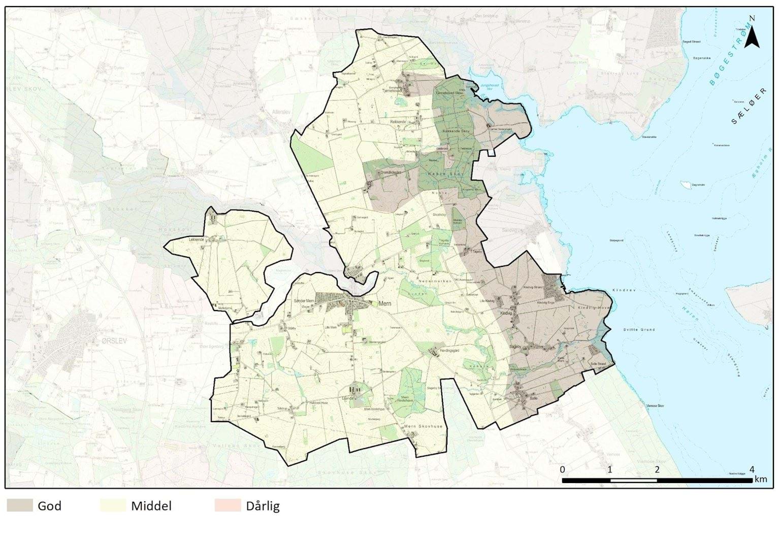 Den østlige og kystnære del af området er i god tilstand, hvor skovområder fremstår næsten med oprindelig udstrækning og hvor tekniske anlæg ikke dominerer. Med hertil hører også den østlige del af nærområdet ved Oremandsgaard Gods og Tjørnehoved landsby, som fremstår meget oprindeligt.